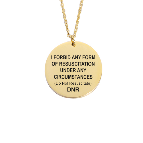 The DNR (Do Not Resuscitate) order is a practical tool to clearly indicate that you do not wish to be resuscitated under any circumstances. The tag is made of stainless steel (diameter: 30mm).
